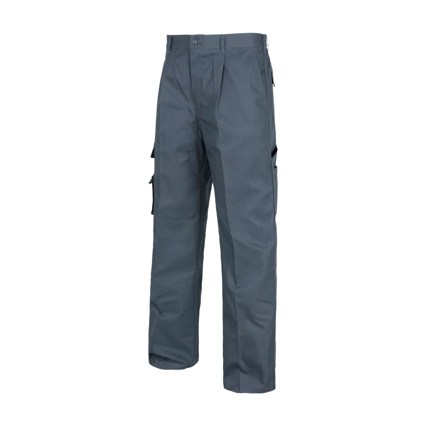 Calça costura tripla. Dois bolsos de abertura inclinada nos costados, um bolso lateral de carga com lapela de velcro e bolso auxiliar sobreposto. Dois bolsos traseiros de chapa com lapela de velcro e bolso duplo de espátula. Elástico na cintura. Passadores. Fecho de botão e braguilha de fecho de correr.
