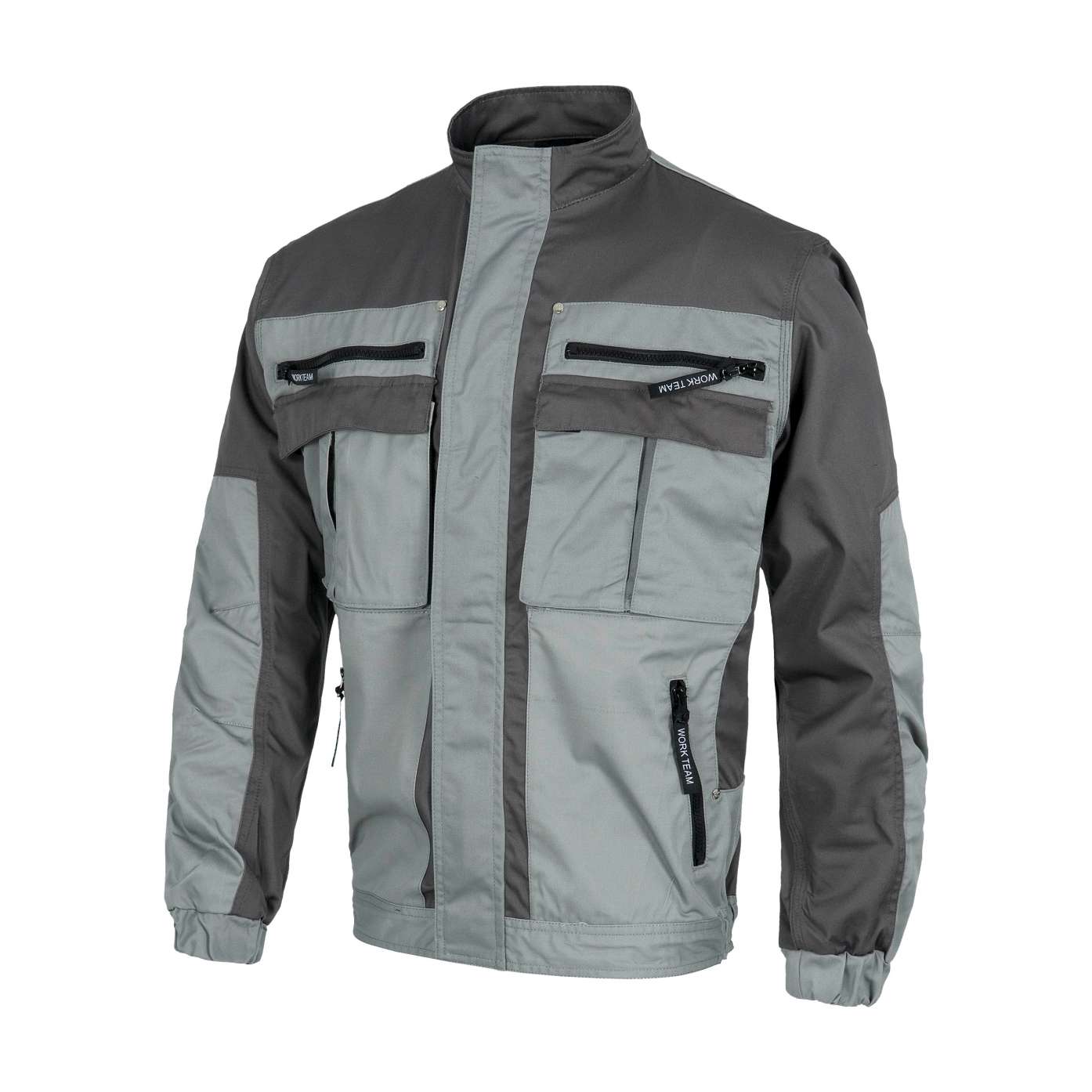 Blusão combinado com costura tripla e corpete nas costas. Gola alta e fecho de correr de náilon oculto por aba com velcro. Dois bolsos no peito interiores com fecho de correr e dois bolsos duplos com fole e lapela de velcro. Dois bolsos laterais interiores com fecho de correr. Mangas combinadas. Punho com elástico. Elástico nos laterais da cintura.