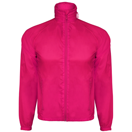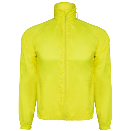 Casaco corta ventos em tecido técnico.1.- Gola com bolso para guadar capuz.2.- Tecido transpirável na parte das golas. 3.- Corte de mangas ranglan.4.- Bolso duplo na parte frontal com fecho de correr. 5.- Abertura e fecho com fecho frontal.6.- Bolso nas costas para guardar o casaco como um saco.7.- Parte inferior do casaco e punhos das mangas com elástico.8.- Decoração em forma de asa situada na parte das costas na zona da gola para poder pendurar a peça de roupa.9.- Capuz com ajustadores plásticos e cordão elástico. 10.- Tecido transpirável no interior da gola.11.- Tecido transpirável no bolso interior das costas.