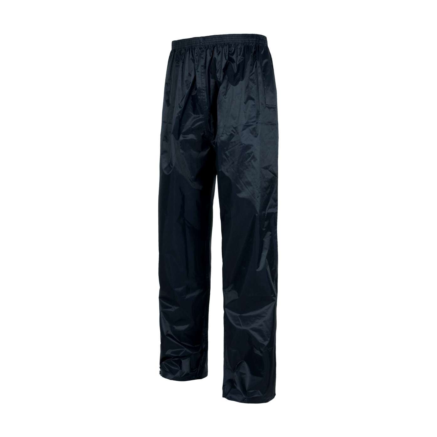 Calça impermeável com cintura elástica. Aberturas laterais de aceso ao interior. Baixo ajustável com presilhas.