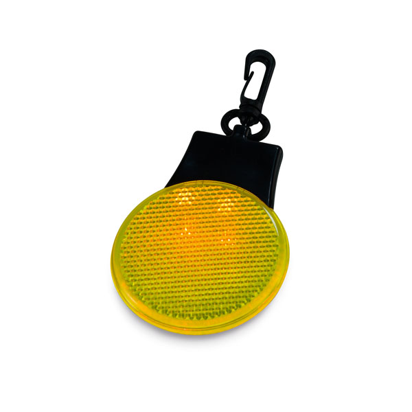 Luz refletora. Com 3 LEDs, 3 modos de luz e mosquetão. Inclui 2 pilhas CR1220. 55 x 75 mm