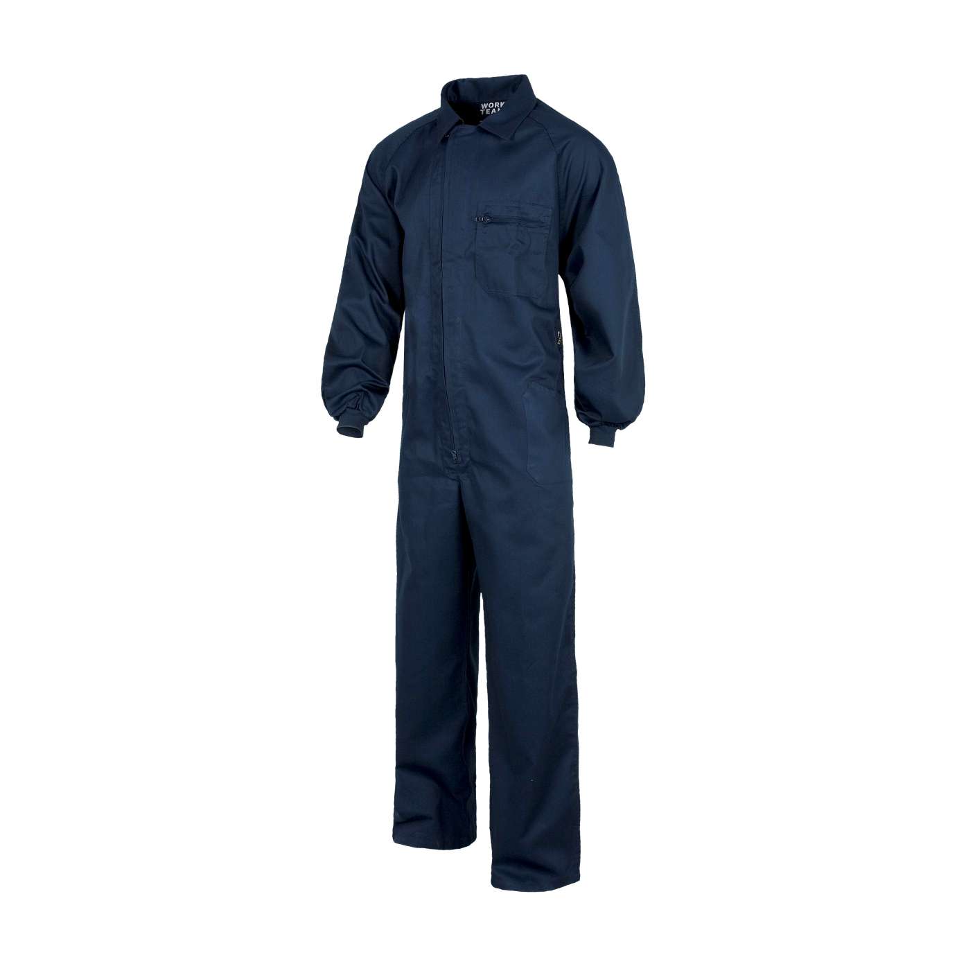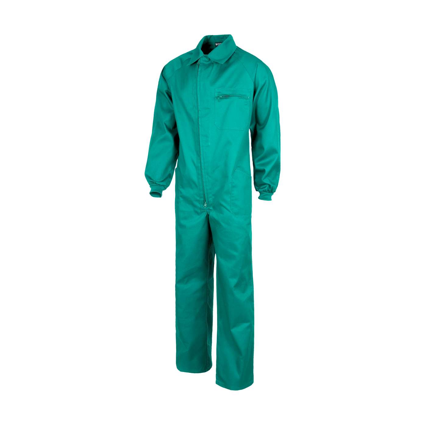 Fato macaco de estilo italiano. Gola tipo camiseiro e fecho de correr de náilon com puxador duplo. Manga raglã com punho elástico. Um bolso de chapa no peito com fecho de correr de náilon, dois bolsos de abertura inclinada nos costados. Um bolso de chapa traseiro e um bolso de espátula. Elástico nas costas.