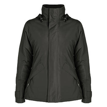 Parka de gola alta com fecho ao tom.1.- Capuz dobrado e estraível dentro da gola com fecho de velcro.2.- Bolsos exteriores com fecho, lapela e puxadores.3.- Dois bolsos interiores com velcro.4.- Punhos ajustaveis com cinchas com velcro.